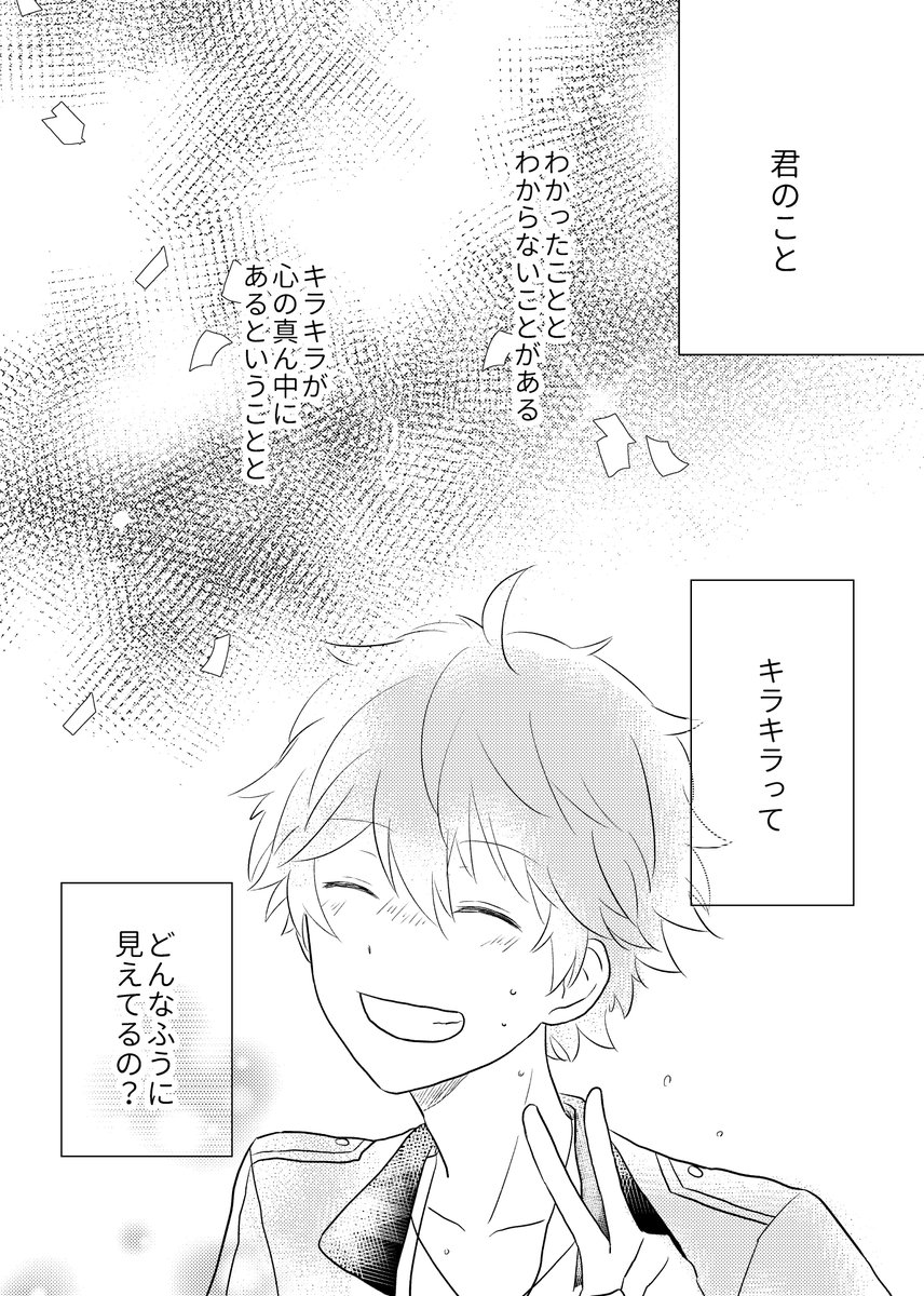 5/3ブリデ 新刊サンプル(1/3) 「きらめきカウンタークロック」 スバあん(CP感薄め) !時空 キラキラとは何かあんずさんが答えを探して悩む話 ※少し捏造未来軸描写有り 全年齢/A5/48P/500円予定 イベント残部通販予定 ツリーにサンプル続きと部数アンケあります ご協力いただけると嬉しいです!
