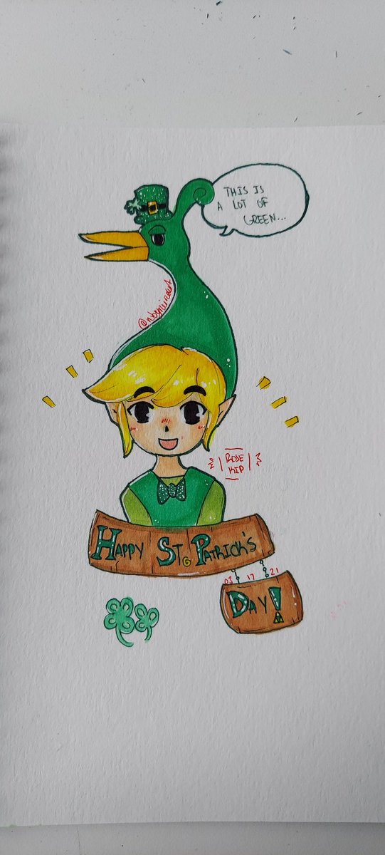 Happy St. Patrick's Day! 🍀💚 this is last year's art for now ;v; hoping to draw something later today but I loved this little Minish Cap drawing I did with Link and Ezlo 😊💕 #Link #Ezlo #StPatricksDay #MinishCap #fanart #LegendOfZelda #loz