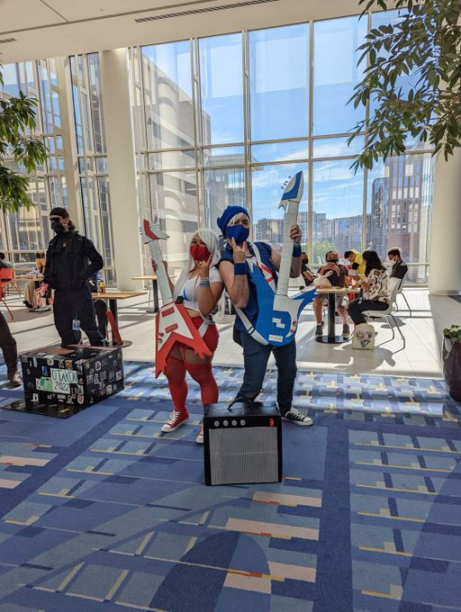 Let's rock and roll, Pokémon Style! 🎸💖 Our Rockstar Latias and Latios for @ThyGeekdomCon ! Ahhh we look so good 😭 huge shoutout to Zach for making our guitars and ears! #Pokemon #cosplay #latias #latios #rockstars #thygeekdomcon