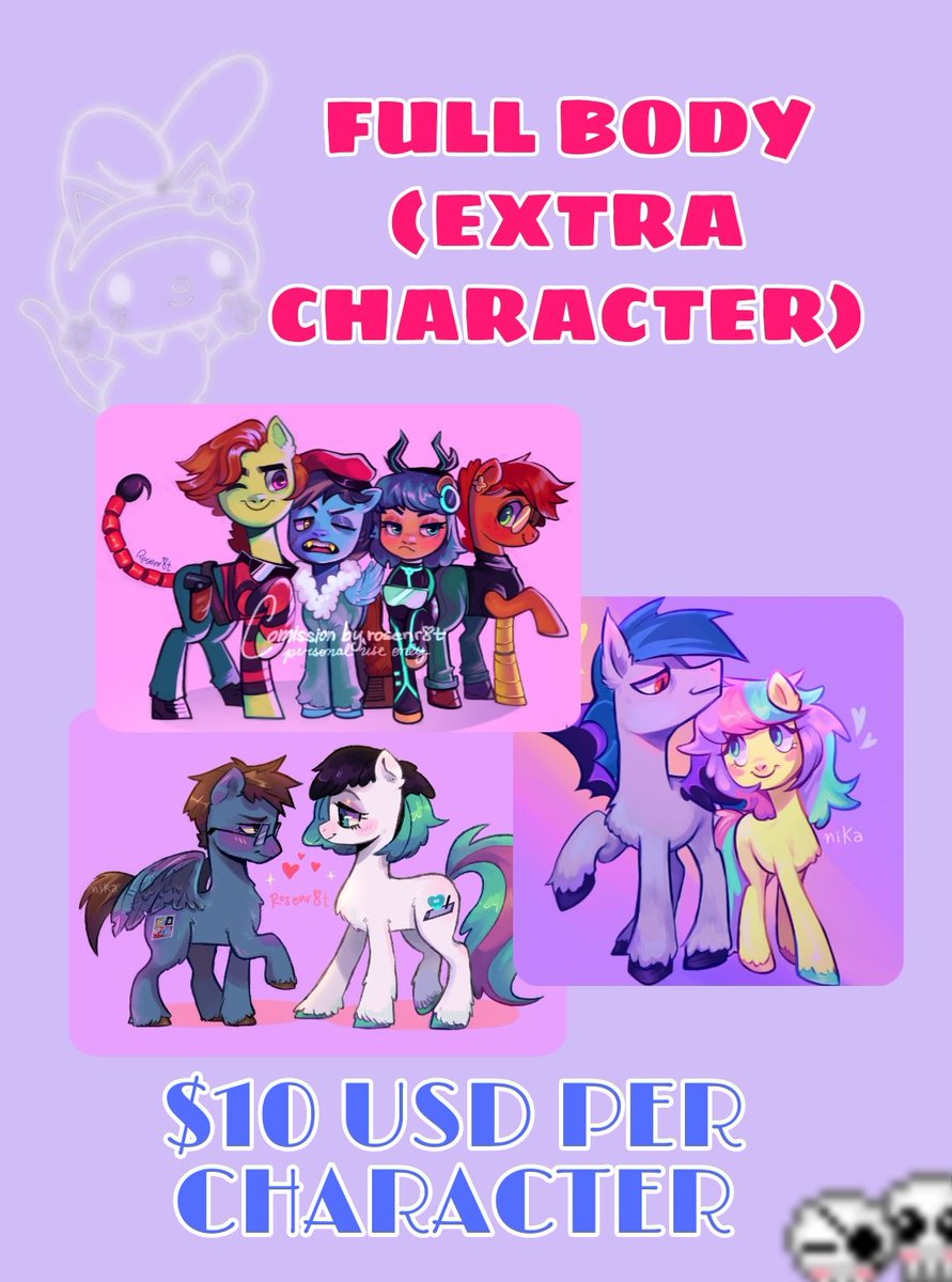 Hi! Just wanted to remind you guys my pony comissions are still open! I will be taking 3 slots for each category🖤 dms are open if you are interested or have any question🤝💞 i only accept PayPal and CuentaRut🇨🇱 RTs are appreciated💕 #mlp #mlpcomission #ponycomission