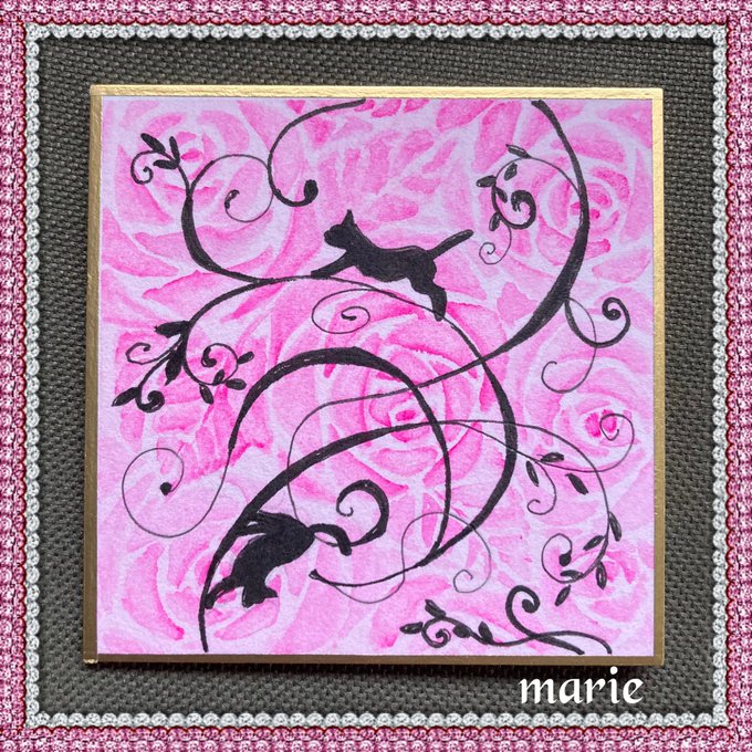 にゃんとも、毎日の温度差に参る。 昨日は、マスク作りをしていたら、 胃が痛くなった。笑笑 やはり、お絵かきが一番いいな。 本日もゆる〜く頑張ろ〜 7.5×7.5ミニ色紙 大好きな薔薇と猫ちゃん #猫好きさんと繋がりたい #イラスト #お絵かき #水彩 #ホルベインオペラ #ミニ色紙