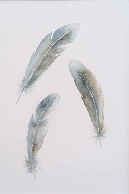 0 6 今日の水彩は羽根を。1枚目失敗して2枚目にしてコツを掴む。この配色好き。 #Watercolor #水彩 20/01/19 08:05
