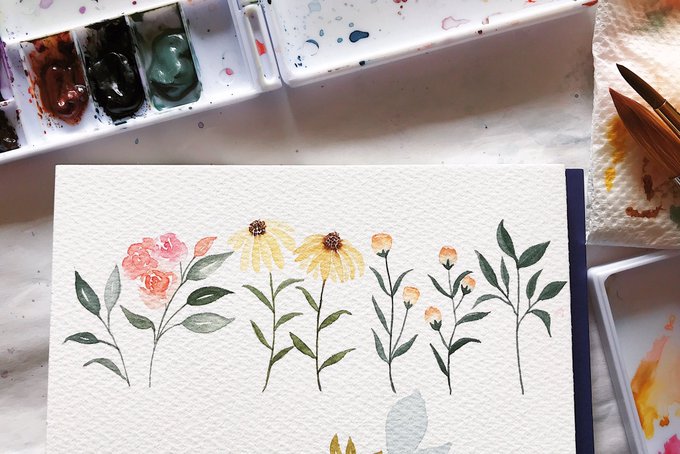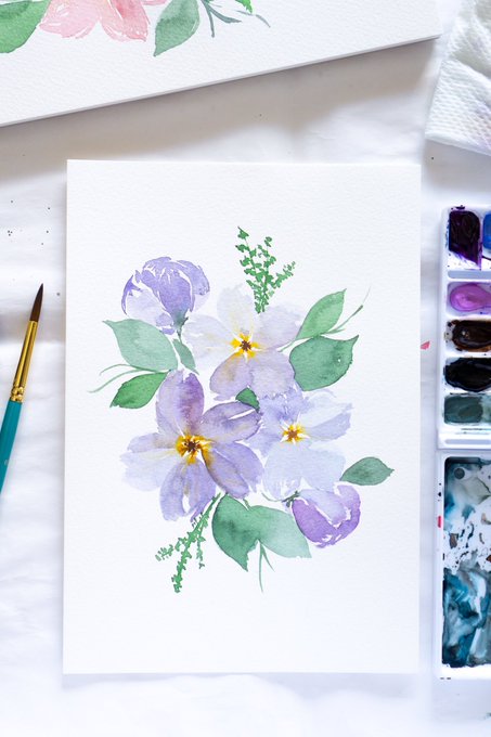 0 6 久々に今日の水彩。素材用の小さい花を描きました。 #Watercolor #水彩 20/02/03 11:55