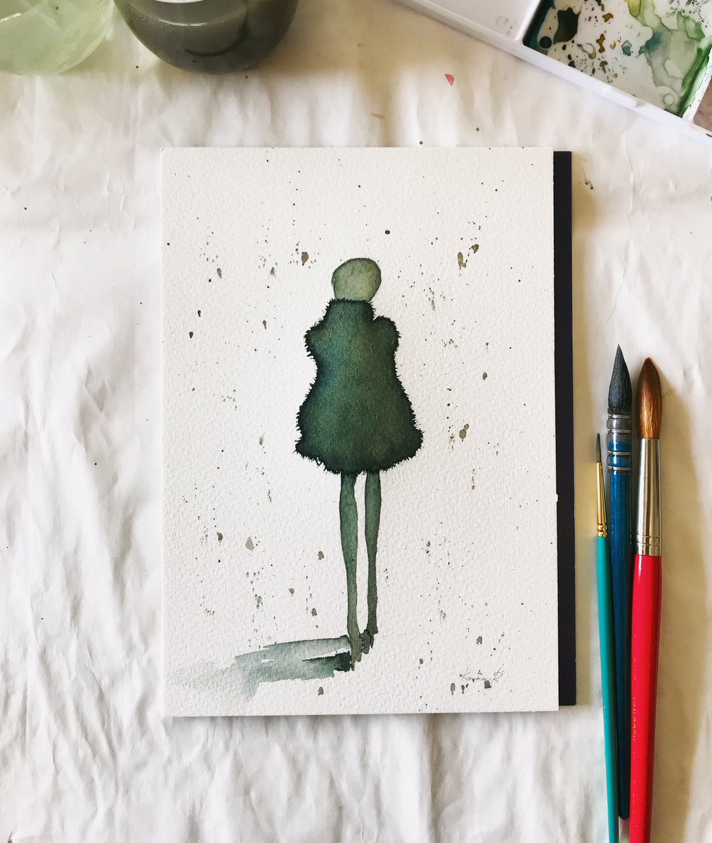 今日の水彩です。前の桜にもうひとつ描きこんだものと、女の人の後ろ姿を描きました。 #watercolor #水彩