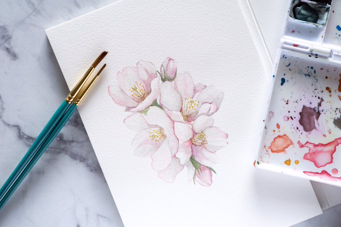 0 8 水彩の桜が仕上がりました。今日スキャナーも届いたので、これで色々作りまーす😊 #Watercolor #painting #水彩 20/02/19 18:11
