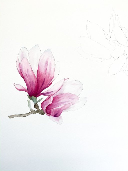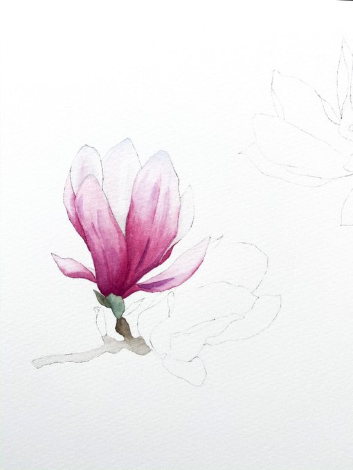 あともうちょっと👏あともうちょっと👏(ここから長い) #水彩画 #Watercolor #マグノリア
