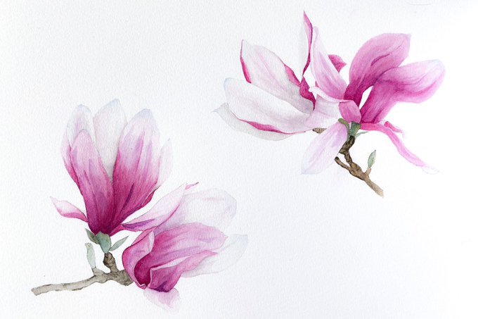 マグノリア完成☺️…でもあとひと房ふた房描いてもいい気がしてきたな。 #水彩 #Watercolor #マグノリア