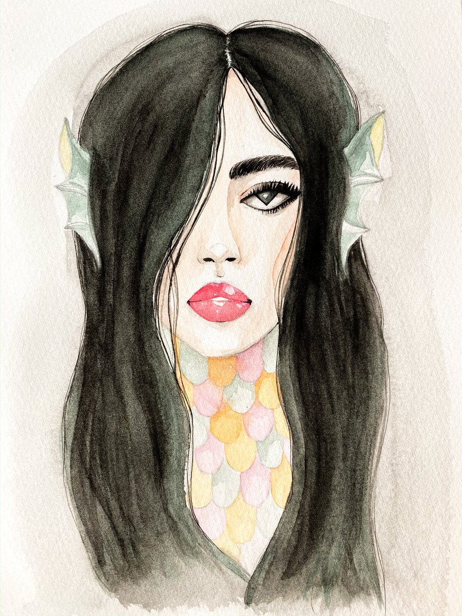 美人なアマビエ描いてみたくて挑戦してみたけど…怖いなぁ…(笑)はやくコロナがおさまりますように🙏 #みんなのアマビエ #Watercolor