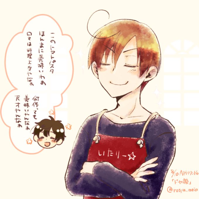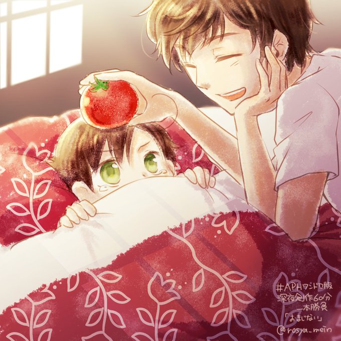#APHワンドロ版深夜創作60分一本勝負 @Hetalia_1daw 親分とちびロマで【おまじない】 「ほら、怖い夢なんかぜーんぶトマトさんが吸い取ってくれるで~。安心して眠り」 「そんなの聞いたことねーぞこのやろー…」