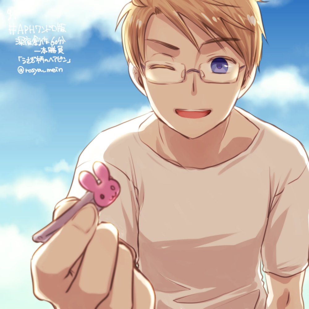 #APHワンドロ版深夜創作60分一本勝負 @Hetalia_1daw アルフレッドで【うさぎ柄のヘアピン】 小さなレディにヘアピンの落とし物を渡すヒーロー うさぎ柄というかうさぎのついたピンになってしまった…