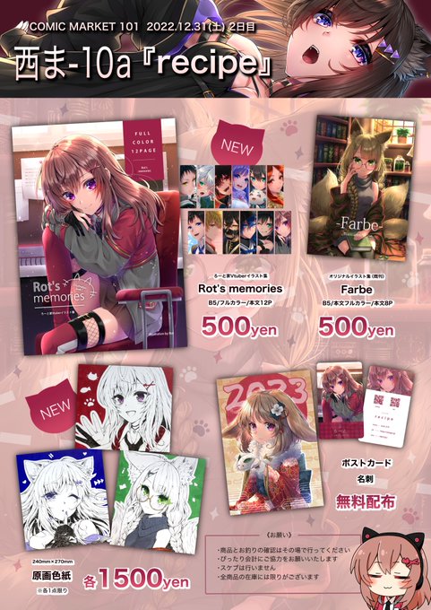 スペースいただけました〜! あなたのサークル「recipe」は、コミックマーケット101で「土曜日西地区 "ま " 10a」に配置されました!コミケWebカタログにてサークル情報ページ公開中です! webcatalog.circle.ms/Circle/1680074… #C101WebCatalog