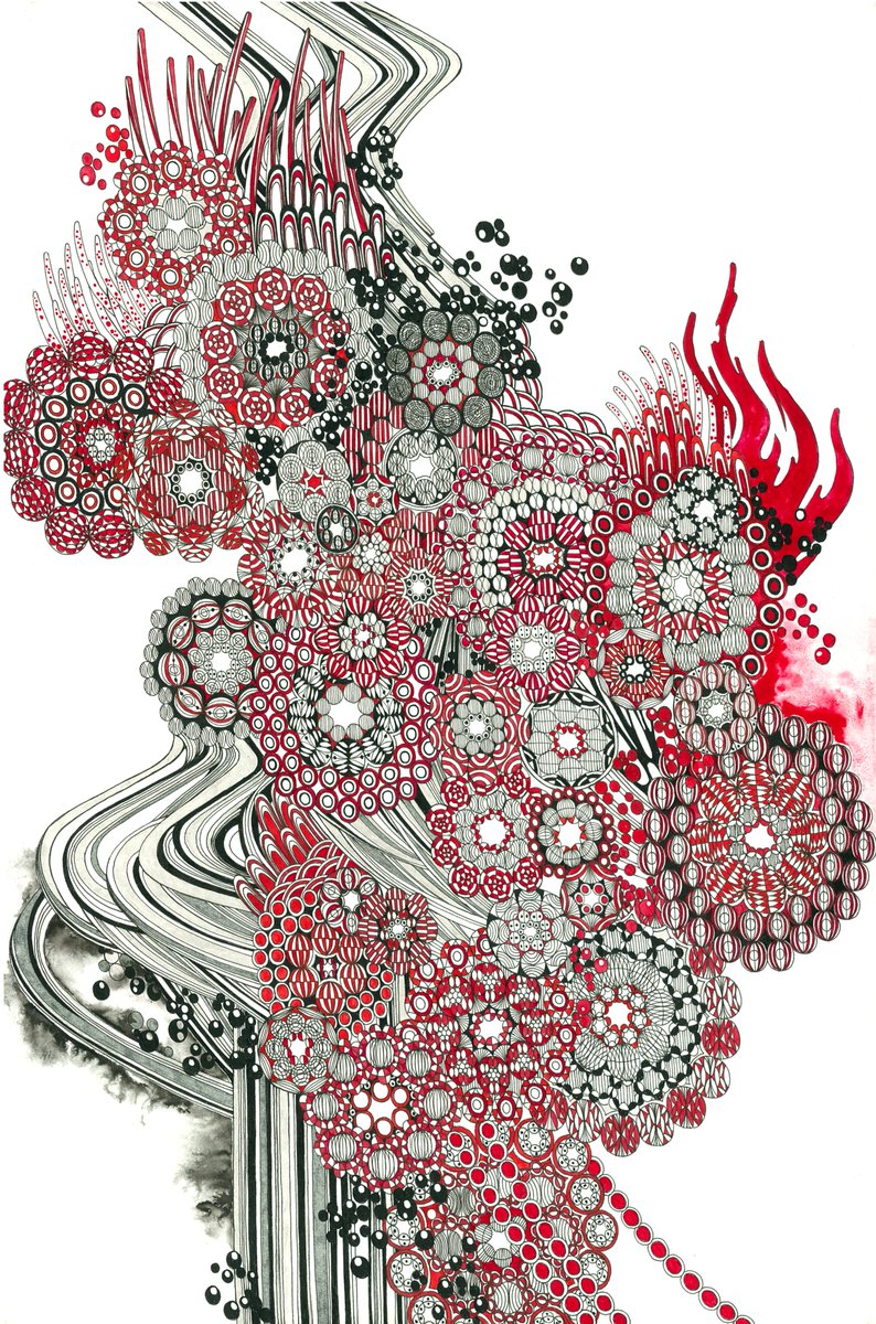 紅霄(Kosho) 2015 30.0×30.0(cm) ink on Kent paper #ペン画 #細密画 #drawings #miniatures #イシイヨシト #YoshitoIshii
