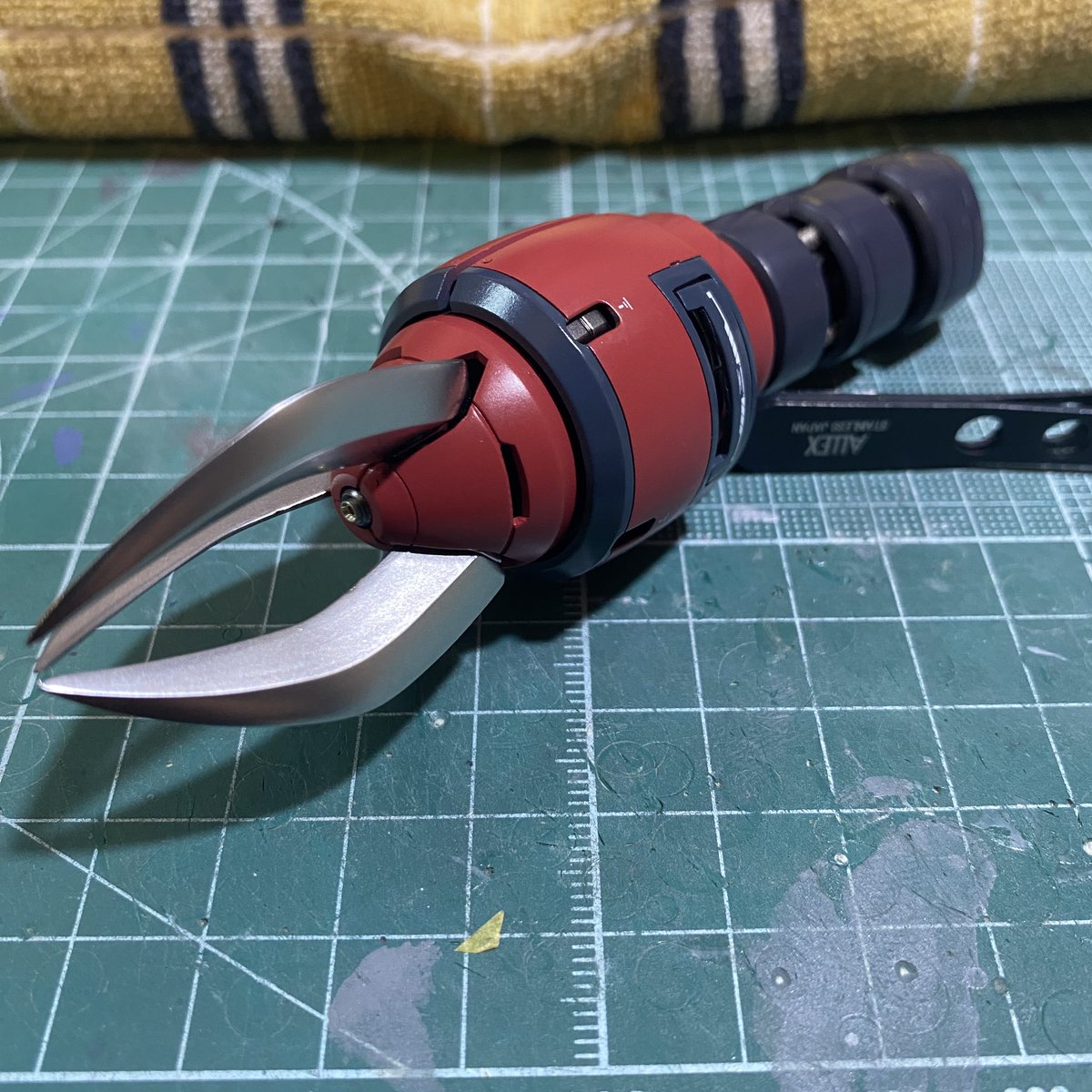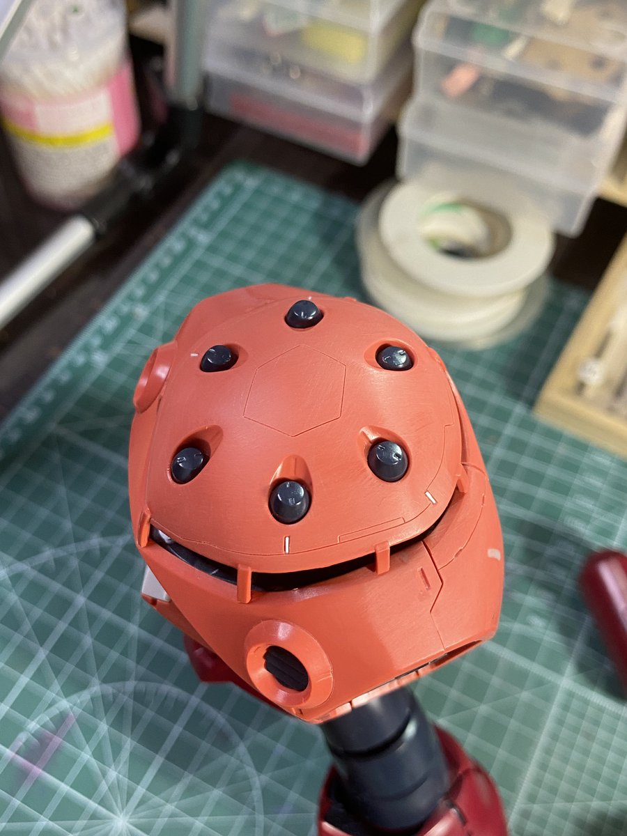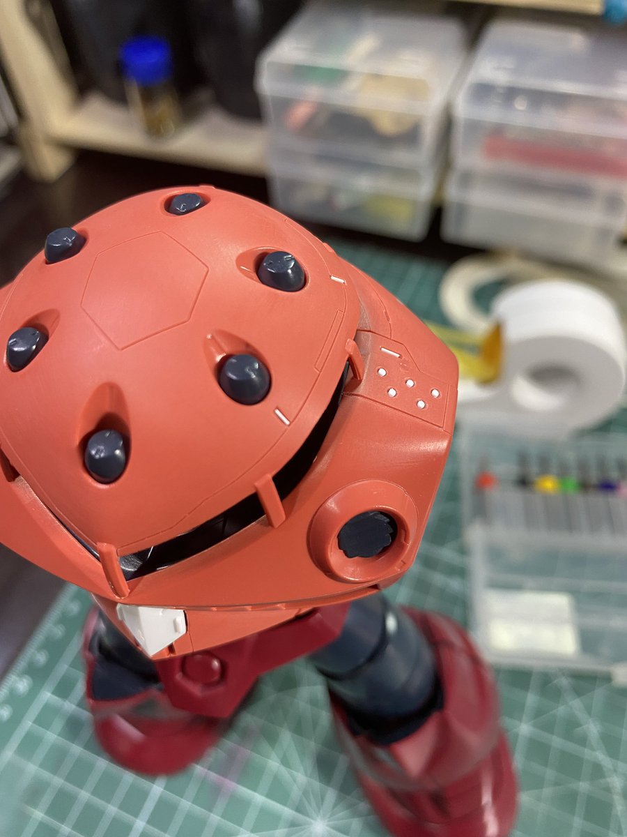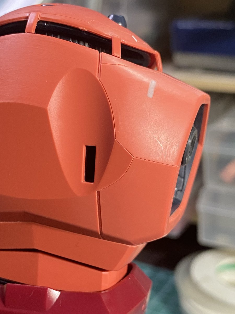 #ガンプラ #ガンプラ好きと繋がりたい #シャア専用ズゴック 蛇腹?フレキ?のパーツ モールド追加〜1㎜タガネ難しい😭 うっすら曲面とか厄介だわ… 他、スジボリ深さチェック 四肢は深めのスジボリで重厚感✨