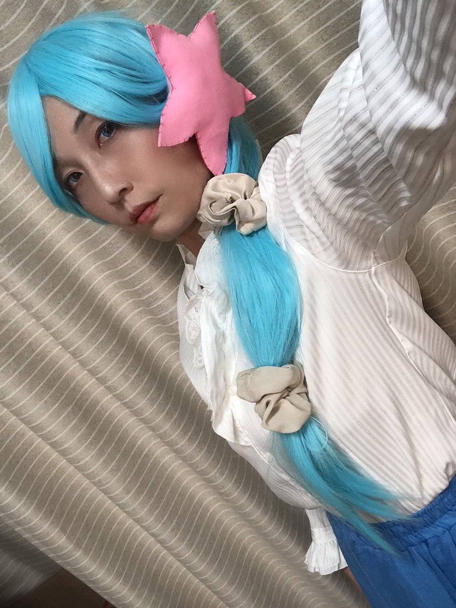 ⚠️コスプレ自撮り注意⚠️ ポケモン:アシレーヌ風 晴れてるのに雨降ってきたからおうちの中だけに😅 頭の飾りを改良したらもっと良くなりそうだけと夏終わりだからまた今度😓 せっかくカラコン、メイクしたのでヅラなしも📷 #宅コス #ポケモン擬人化