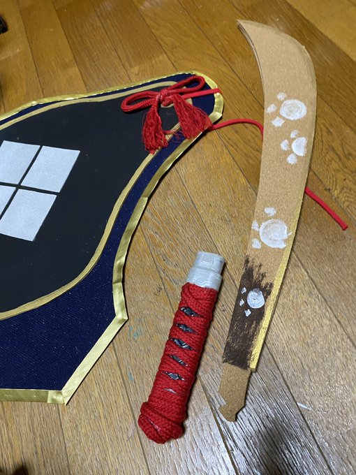 0 13 今朝のコス制作状況。残り今夜と明日。なぜ2人分の衣装+小道具を1週間で作ろうと思った。私😇 #コスサミ #あくまで雰囲気で #クオリティーより間に合うかどうか 22/08/05 13:51