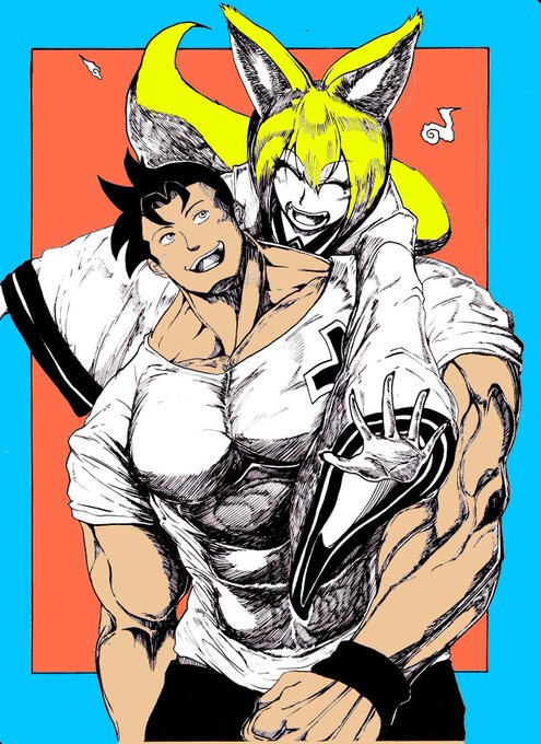 年末年始なので『いつもの』に固定ツイート変えちゃいますね。 画像は僕が描いてる漫画の主人公たち。 主に筋肉とか狐娘とか化け物とかの話です 第一話はこちら pixiv.net/artworks/32511…