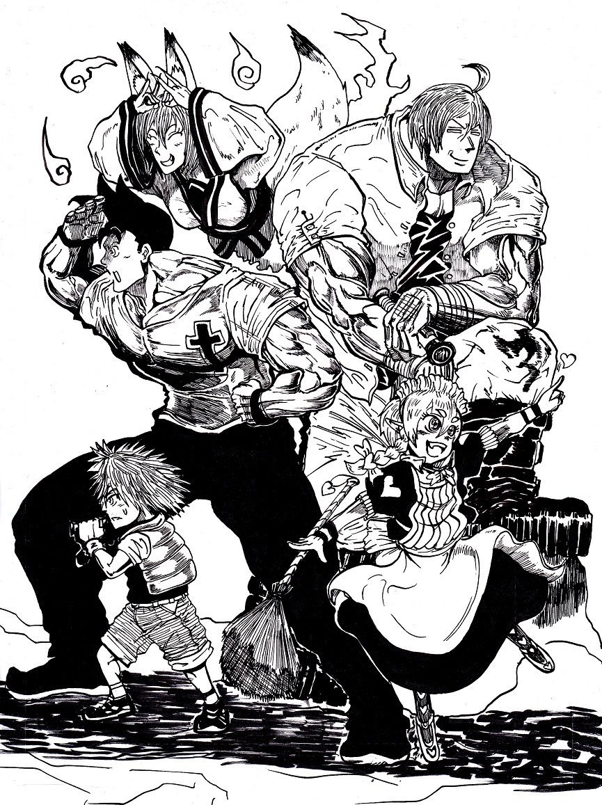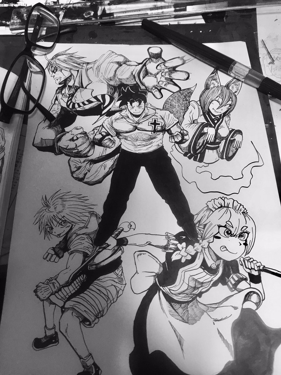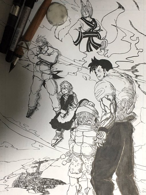 #アナログ絵で魅せてみよ #絵柄が好みっていう人にフォローされたい #一次創作 アナログ、モノクロ、漫画的マッチョ、狐娘とかが好み 逆にカラーは全然🥲、練習中 デフォルメ描ける人は憧れる ロボを描ける人にも憧れる