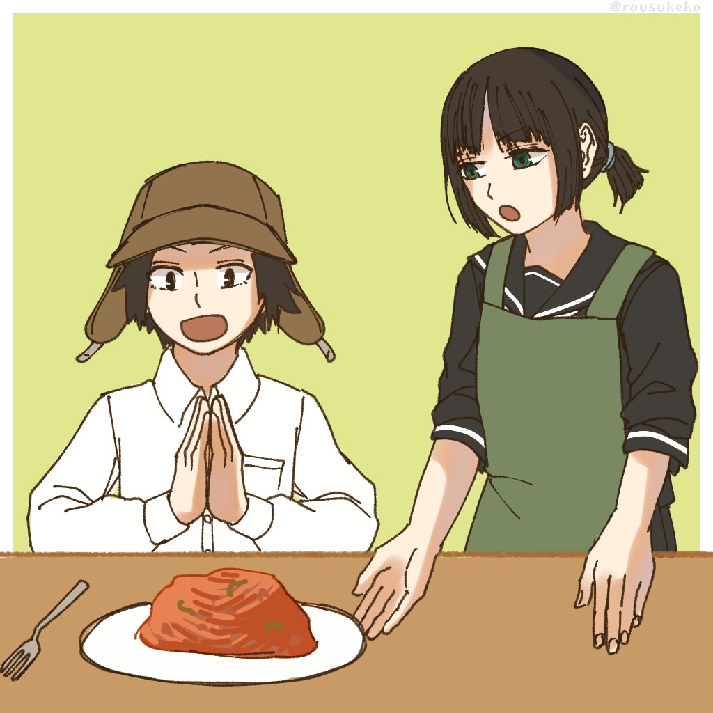 #ワートリ版深夜の真剣お絵かき60分一本勝負 +20分 制服にエプロンめちゃかわだよね 2人描くのは初めてだったので時間超えてしまった