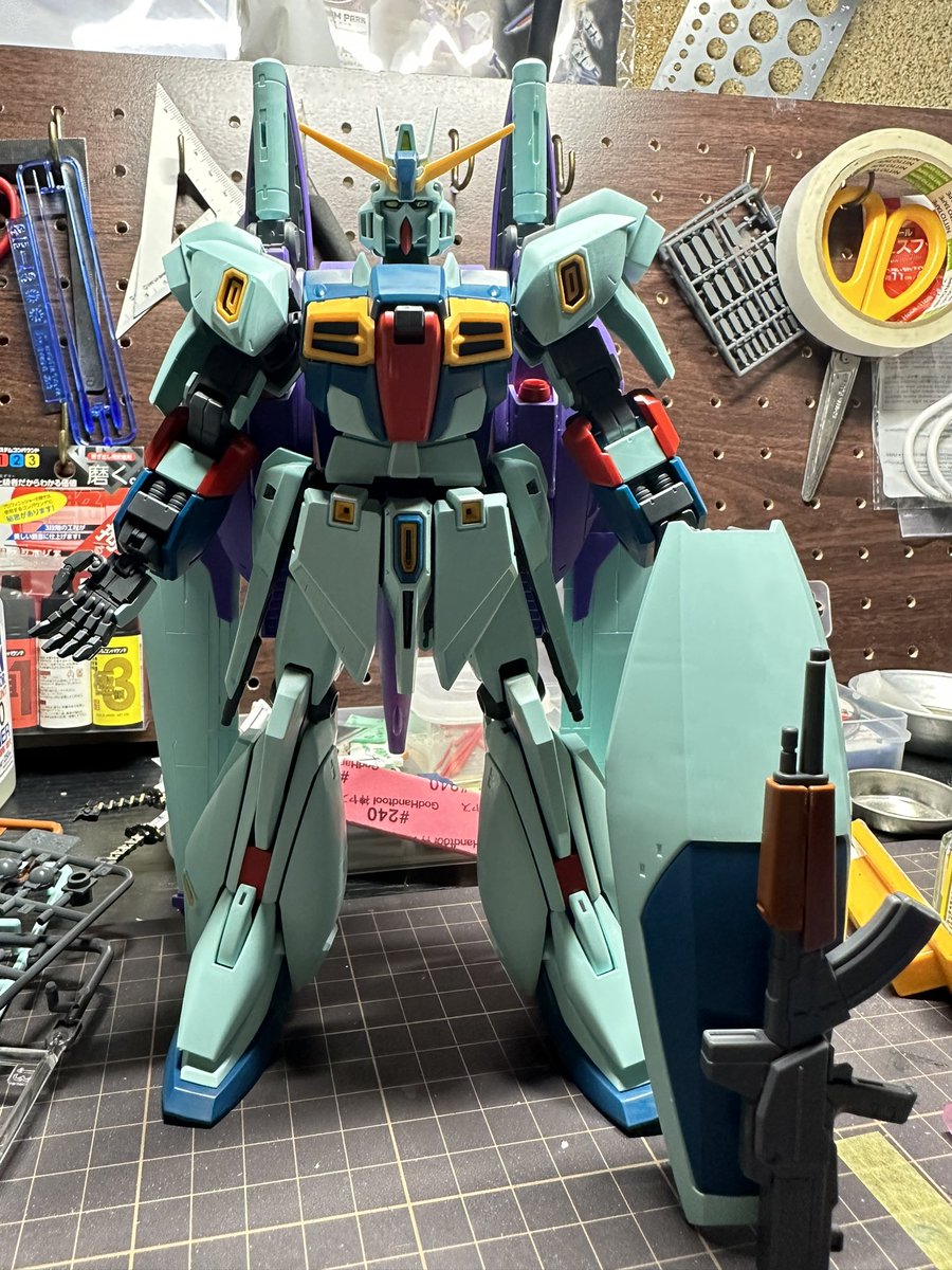 ねむってたリガズィカスタム完成ー やっぱりゼータ系列はかっこいいわ さーて筋彫りやらなんやら追加して塗装もやるぞー #ガンプラの画像を貼るとRTされると聞いて #ガンプラ好きな人たちと繋がりたい