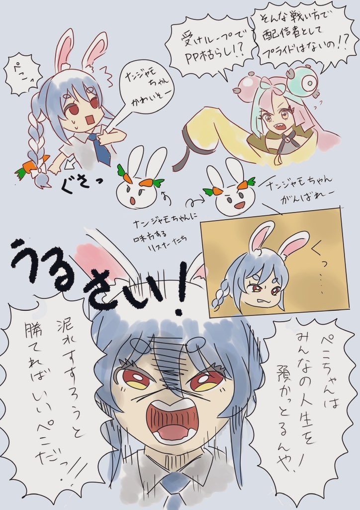 この前のナンジャモちゃんと ぺこちゃんの初コラボ。 周りに何と言われようと仲間の命を守るために何としてでも勝ちに行くペコちゃんの姿めっちゃ面白かった笑 #ぺこらーと #ぺこらいぶ