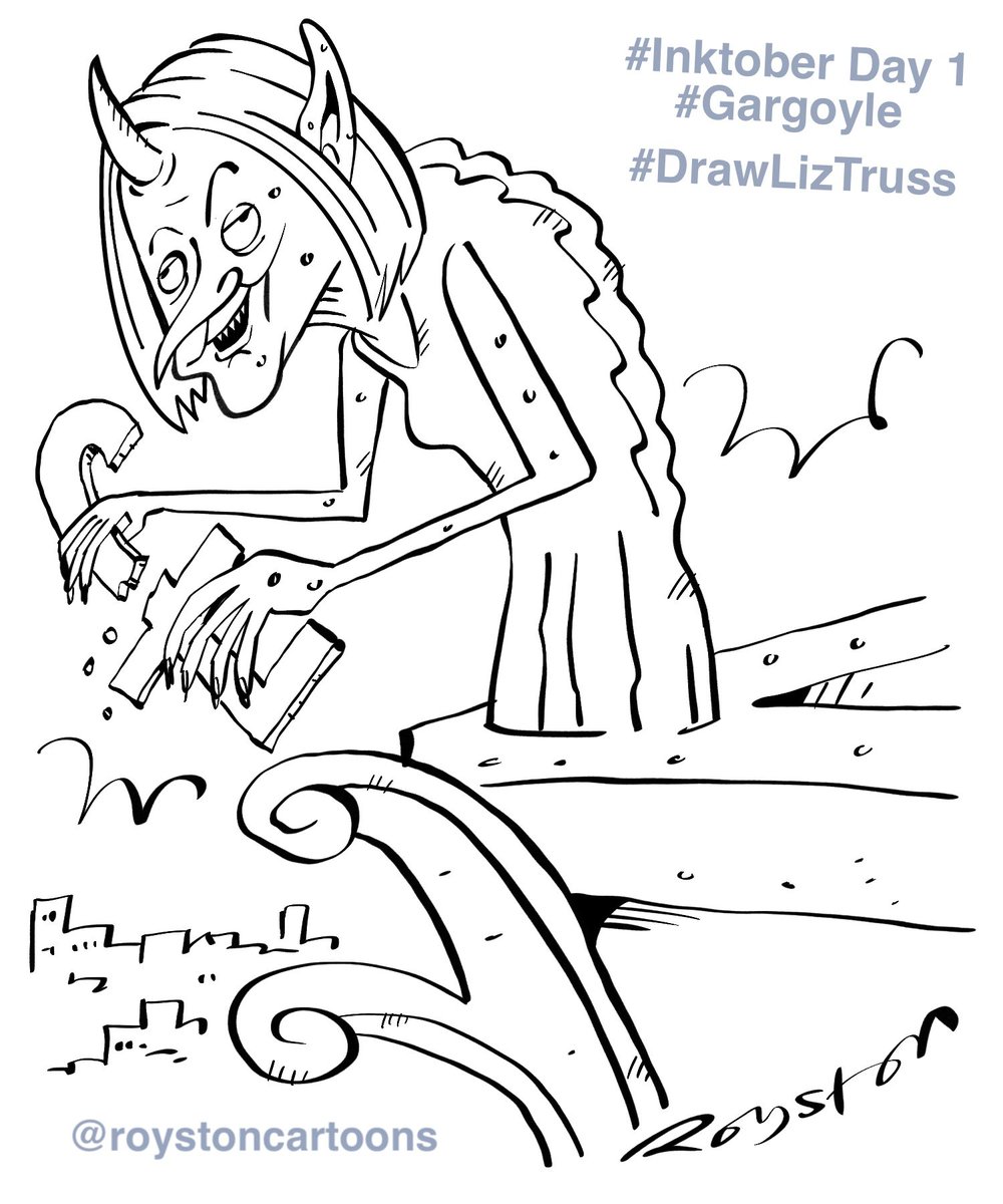 I combined the #Inktober #Inktober2022 Day 1 theme #gargoyle with @MartinRowson's #DrawLizTruss ... Too much? 😆