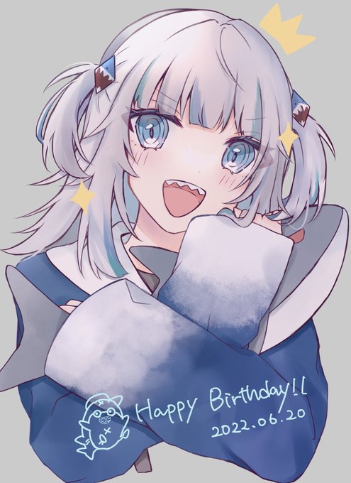 8 50 #gawrt #GuraBirthday2022 遅くなったけどサメちゃんお誕生日&400万人おめでとう!!🥳👏🎉🦈🦈🦈 22/06/21 22:30