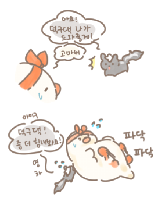 🐰 국봉아 니가 진정 사기를 쳤구나!! 이걸 어떻게 받어 우리 국봉이가 진짜 그 고사리같은 손으로 하나하나 한자써가지고 사주봐서 번 돈인데... 🦨 괜찮여~