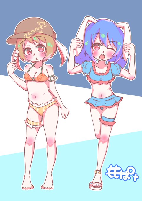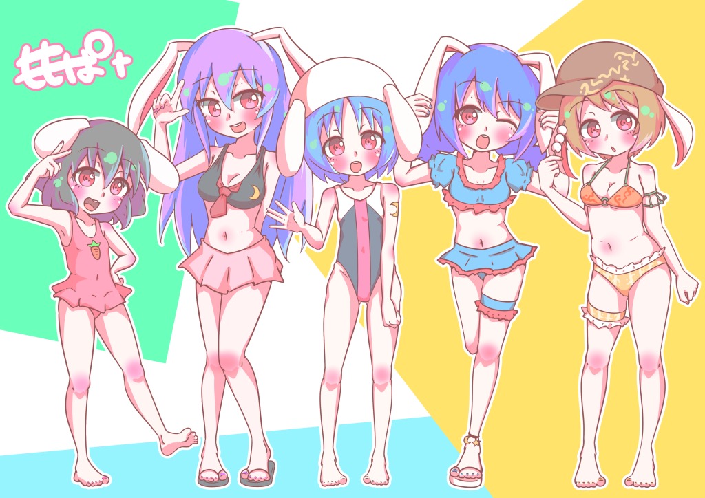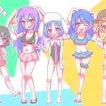 水着なうさぎさん達集合ですぴょん^0^🐇ピースしたりもぐもぐしたりえへへ