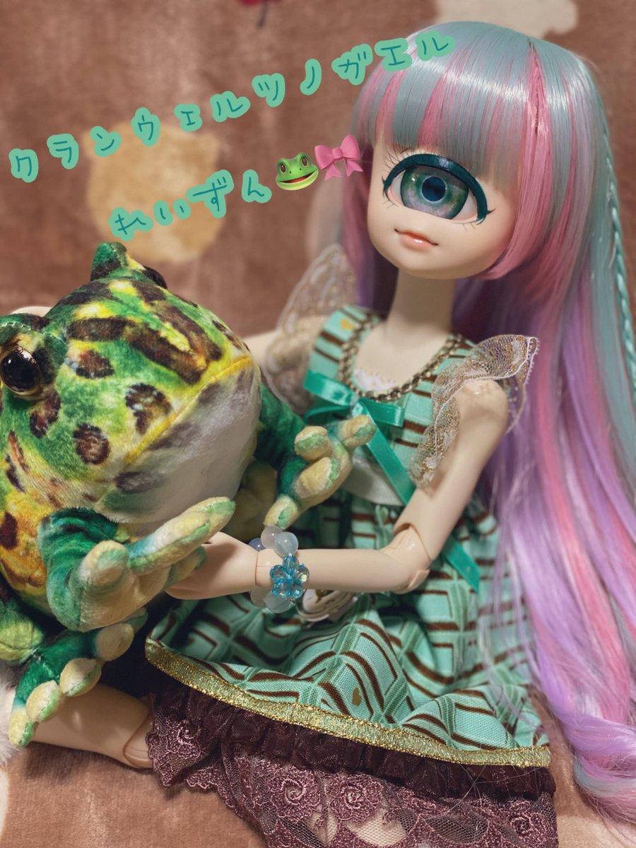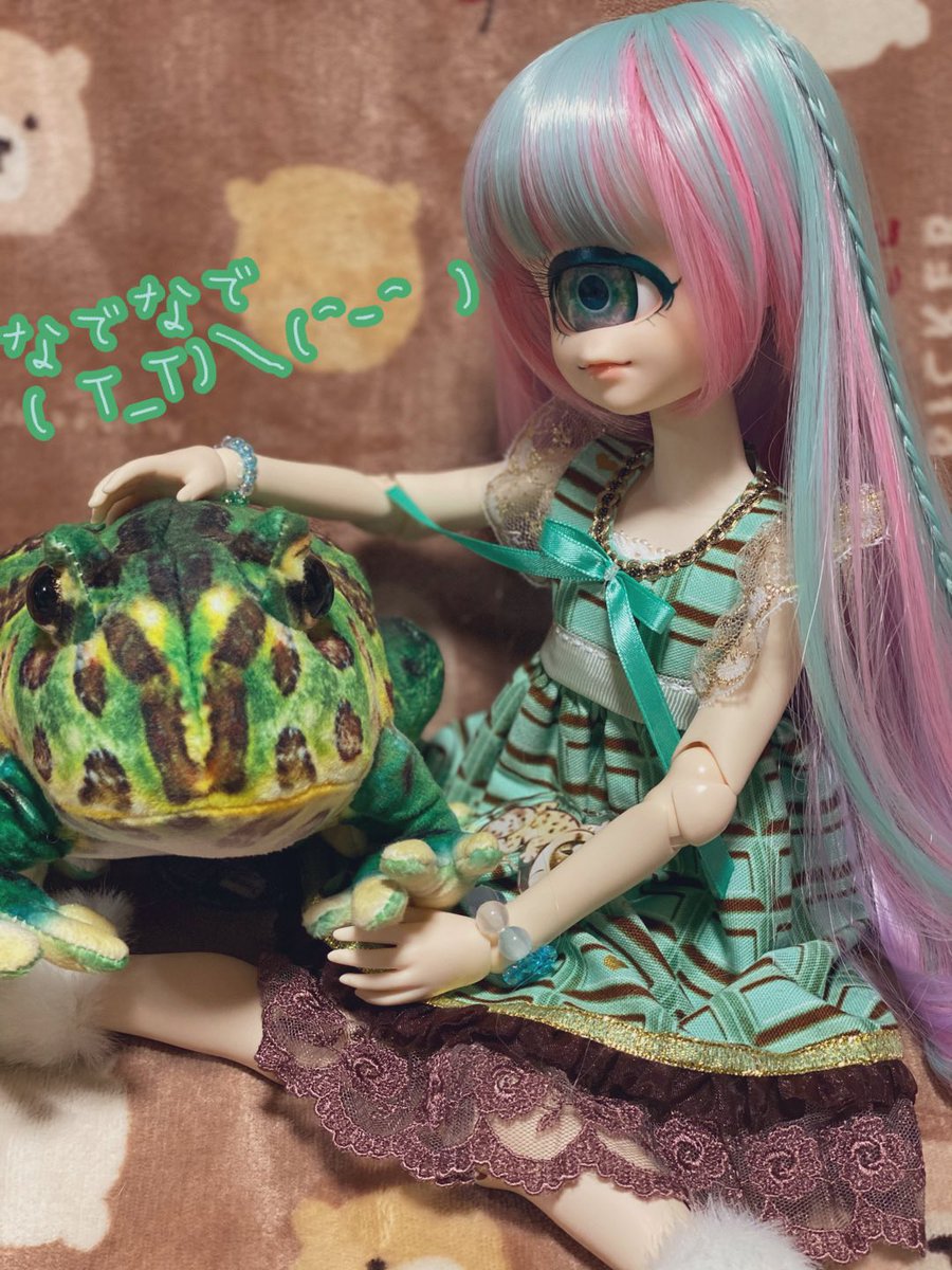 いやなことあったらなでなでしてくれる🐸🎀うちの癒し担当😌✨ #こちもっこ #つばきゅろぷす