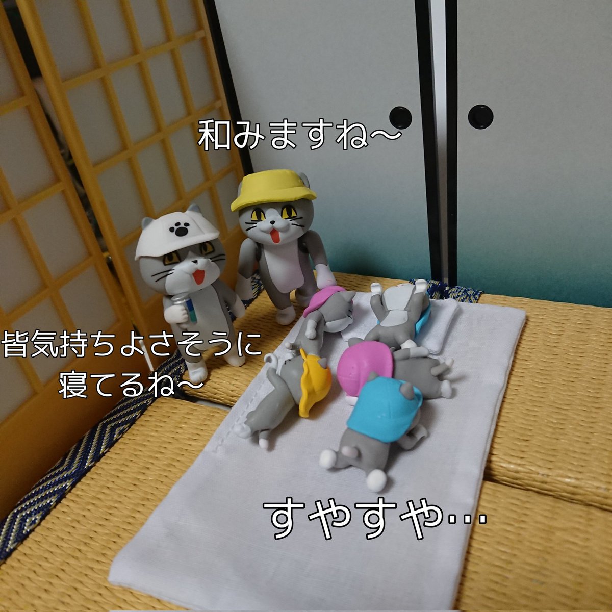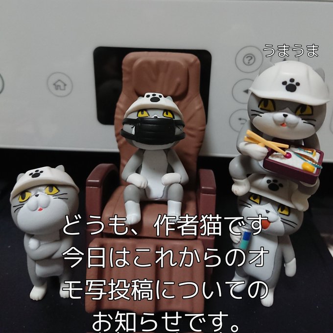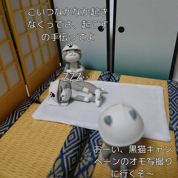 1 6 黒猫キャンペーンのオモ写撮影の日の猫たち 本当は仕事猫フィギュア4の寝てる猫さんでやりたかったですが間に合わなかったのでこちらで!!黒猫もらえますように!! #オモ写 #仕事猫 #黒猫キャンペーン6 23/05/26 22:09