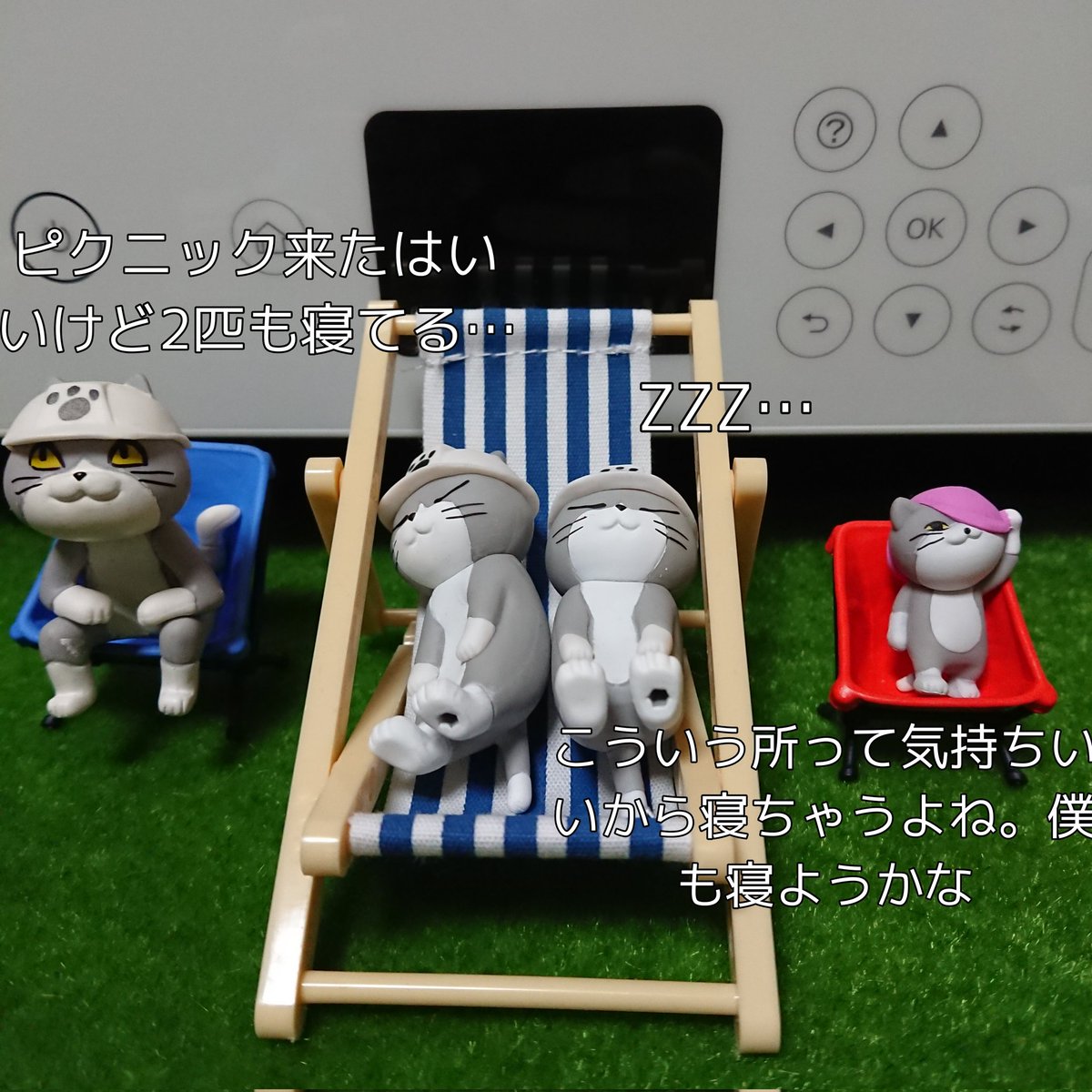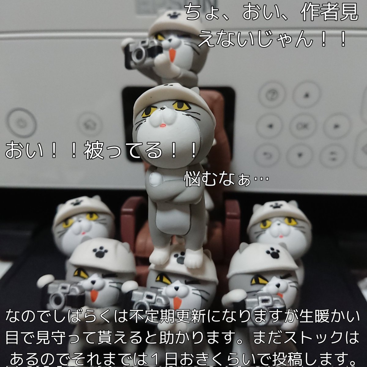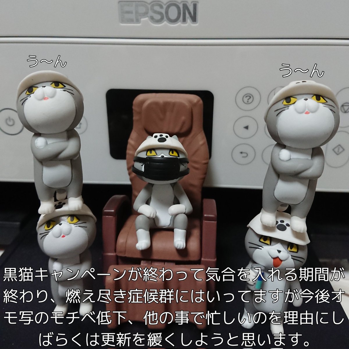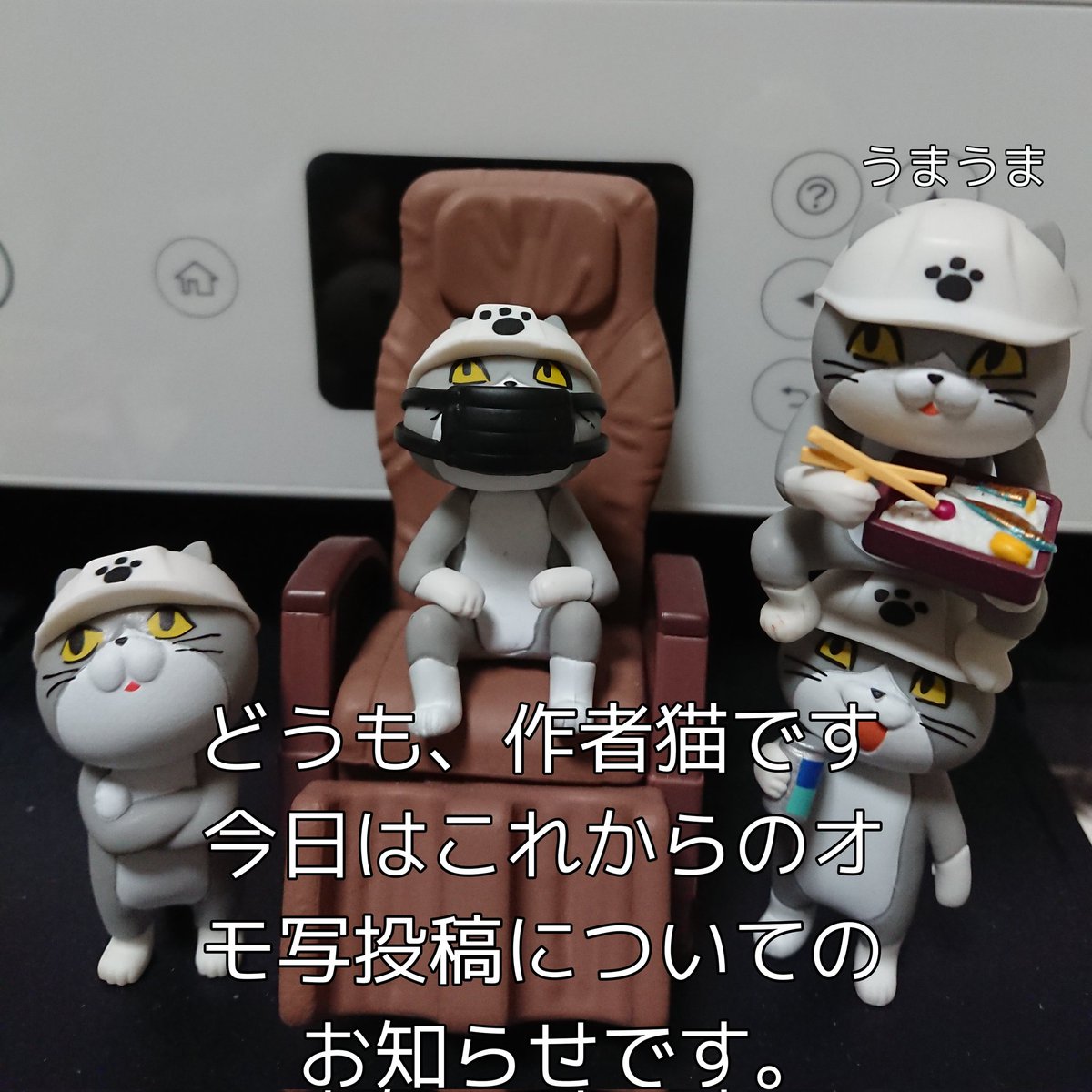 黒猫キャンペーンのオモ写撮影の日の猫たち 本当は仕事猫フィギュア4の寝てる猫さんでやりたかったですが間に合わなかったのでこちらで!!黒猫もらえますように!! #オモ写 #仕事猫 #黒猫キャンペーン6