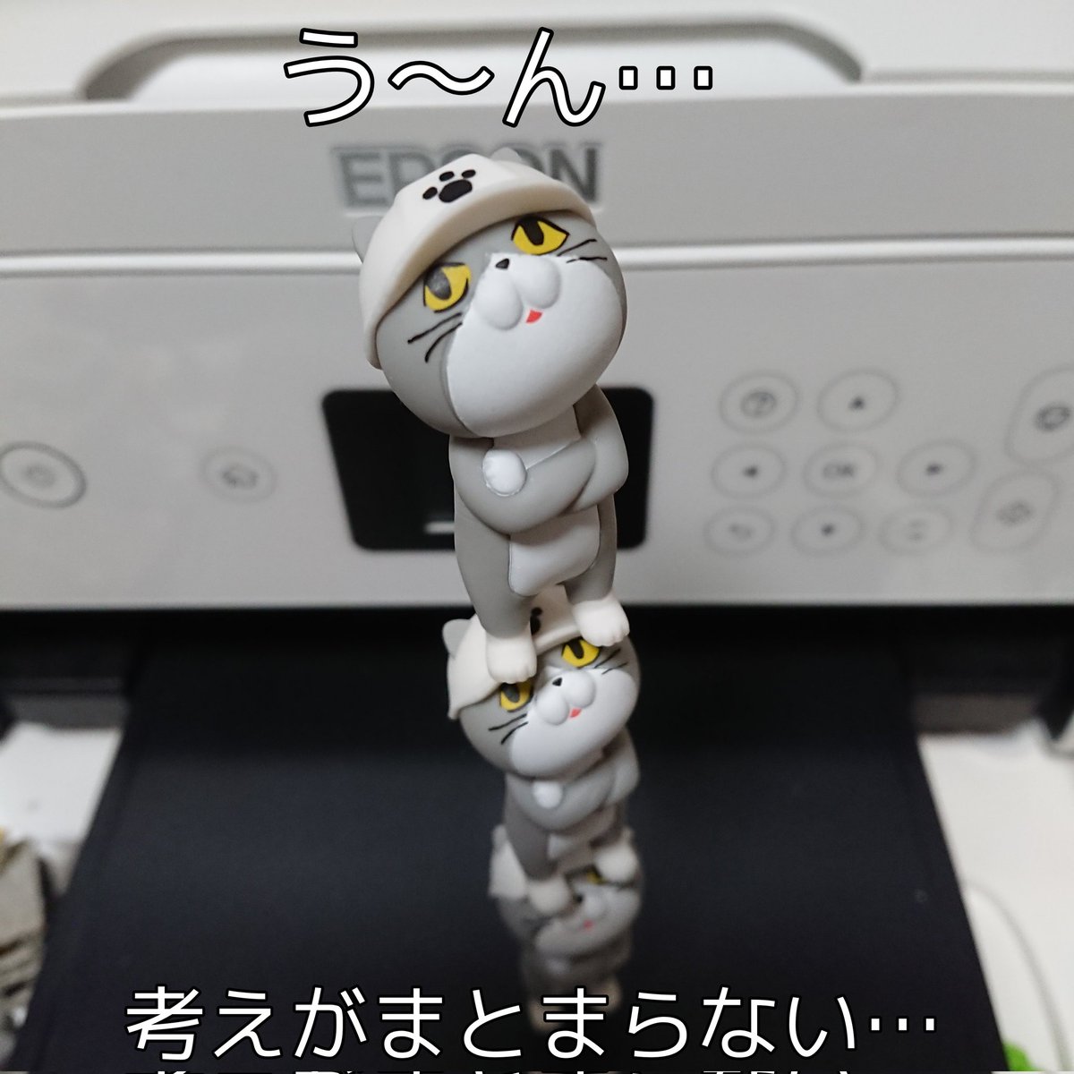 悩みが止まらない猫 明後日ポケカの新弾の発売日なのですが抽選予約外れました泣きました。 #オモ写 #仕事猫