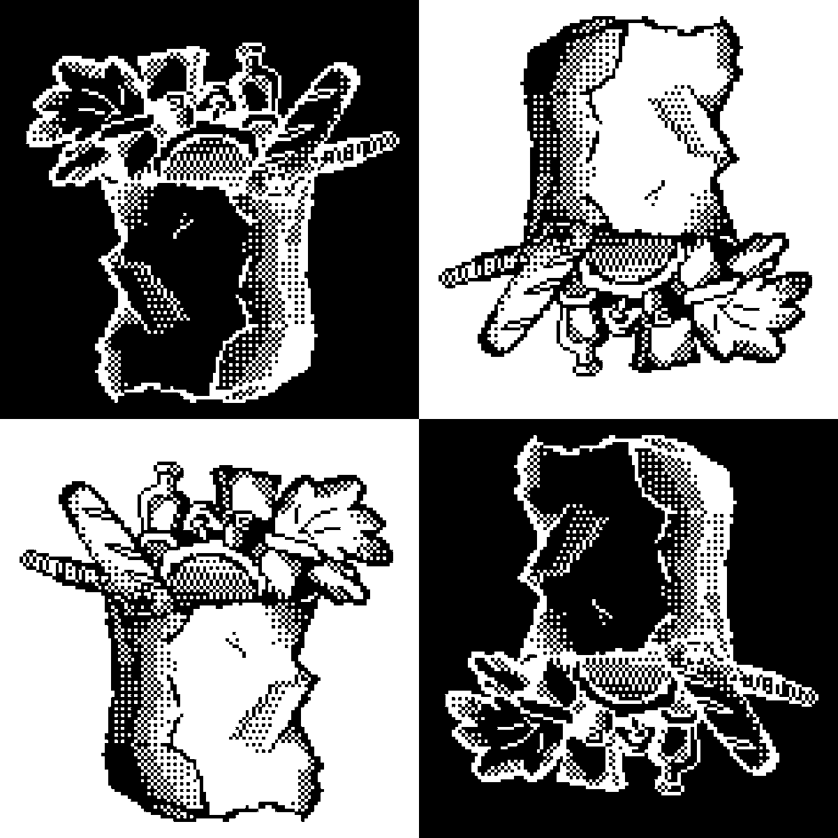Tried 1-bit pixelart for today's @Pixel_Dailies Theme: #groceries Size: 128x128 (256x256 with all 4) Colors: Black and White #pixelart #pixel #pixel_dailies #ドット絵 #aseprite #1bit #blackandwhite