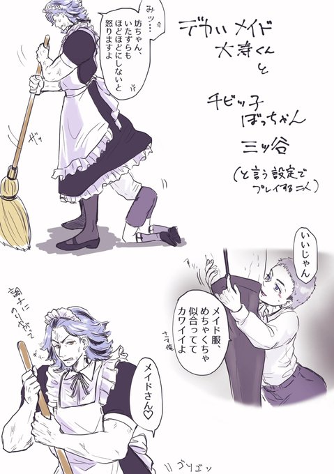 メイド🦈くんと坊ちゃん🍯落書きの続き…? コスプレというかイメプレする二人もいいよねという。 リプ欄にたいみつ・みつたいルートのちょっとえっちなやつ載せてます(ポイピクリス限)