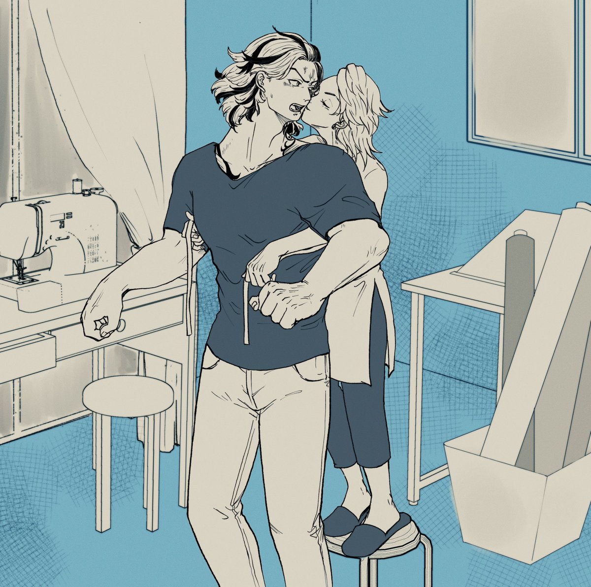 採寸いちゃいちゃたいみつ(たい)。 🦈「おいコラ余計なことしてんじゃねーよ💢」 🍯「いやー、素直に採寸されてるたいじゅくん可愛すぎてさ💞」