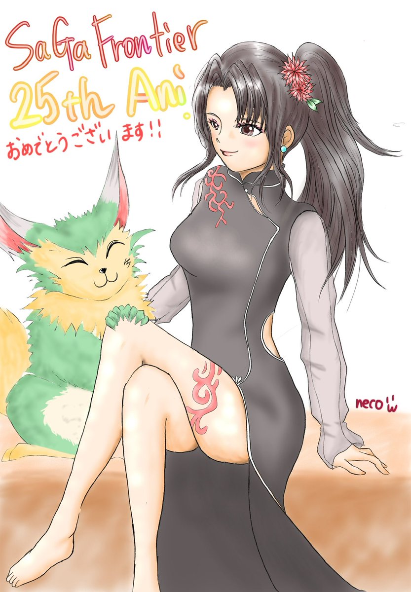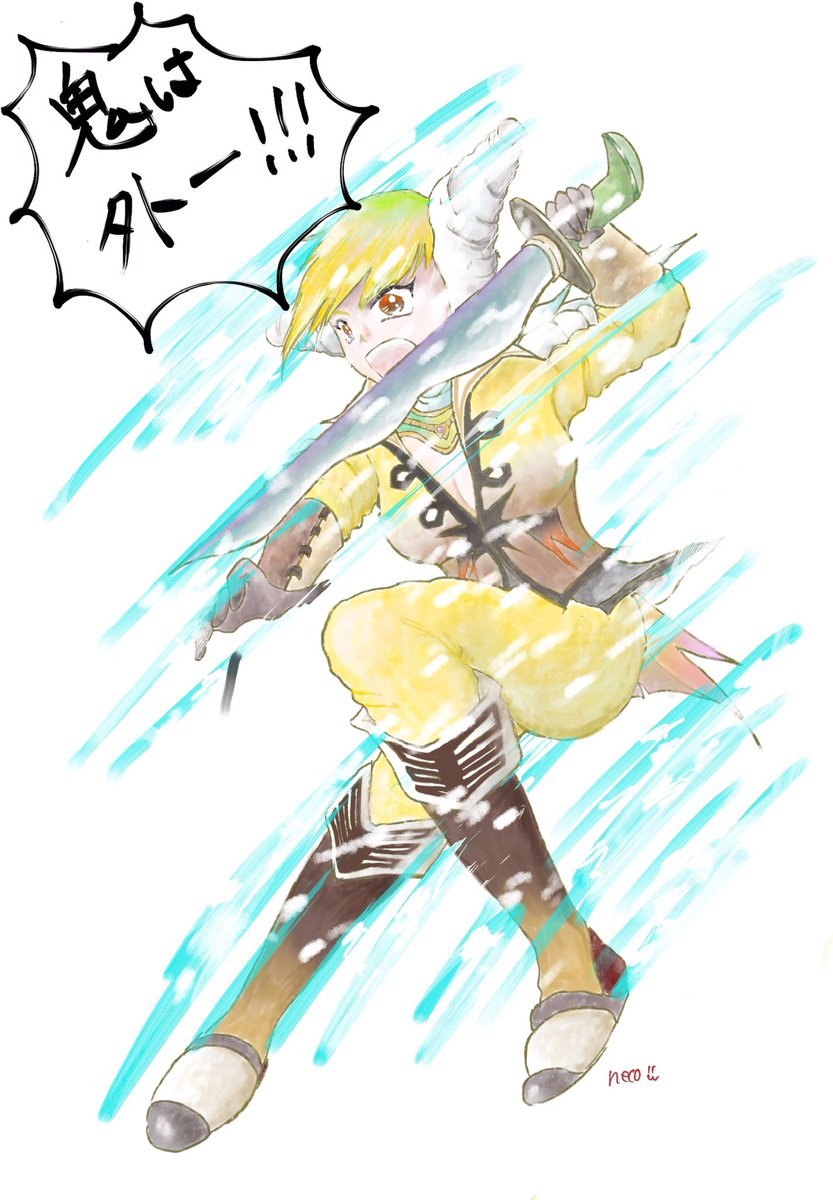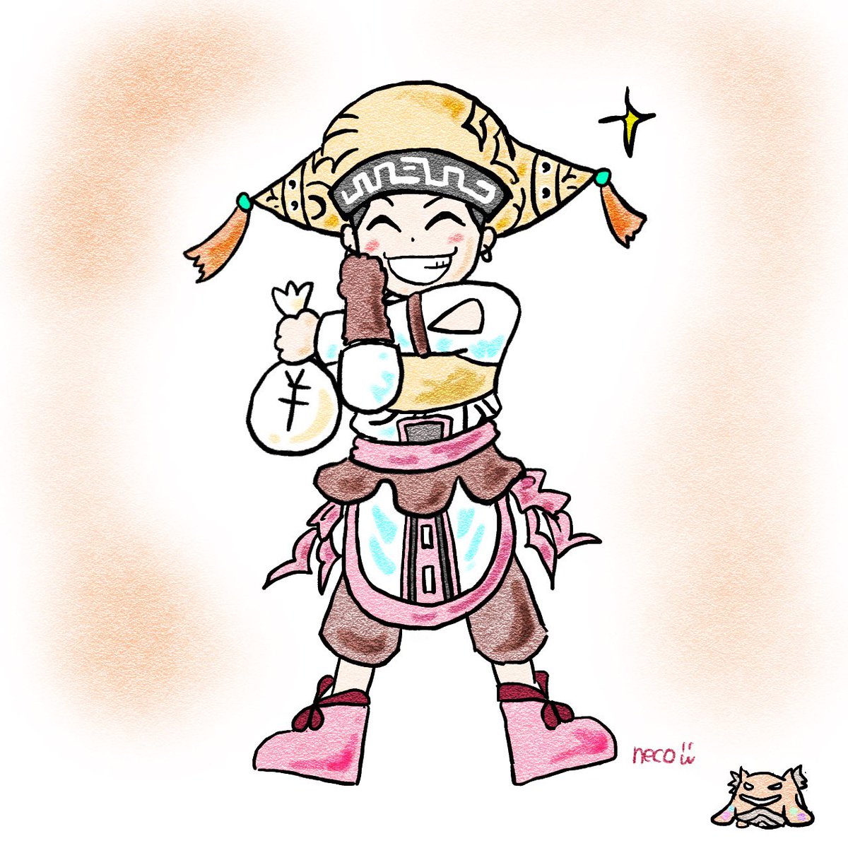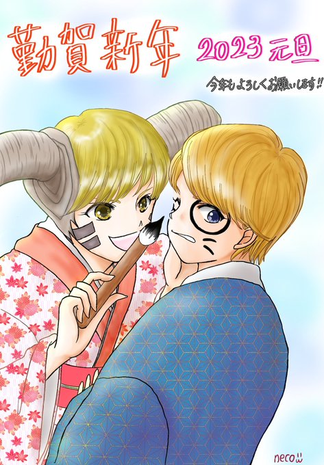描き初めです🖌 「坊や、諦めなっ!」 羽根突き対決で勝ったシフさんは、相手が貴族でも容赦なく顔に墨を塗れるそうです。 #着物でも頭の角は欠かせない 今年も楽しんで描くをモットーにイラスト上げるので、見ていただけたら嬉しいです🙇♀️ #サガ絵 #ミンサガリマスター
