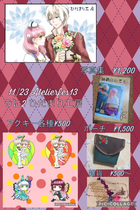 お品書きです。 新作はアクキー(ソフィー、プラフタ、ロジエス)、ソフィー2モチーフのポーチです。 既刊のロジエス写真集や雑貨類も持っていく予定です #アトリエフェス