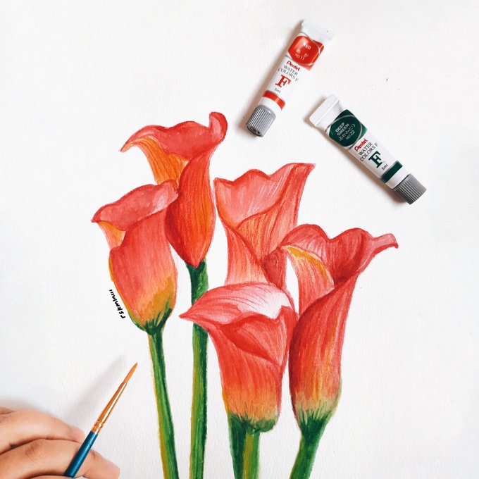 Keknya aku pengen ngedalamin botanical watercolor dehh wkwk, abisnya seru bangettt🤧🌷 #ArtistOnTwitter #Watercolor #artidn