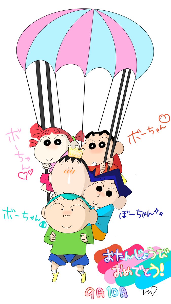 嬉しそうなボーちゃんと春日部防衛隊のみんな👑🍙🍑💕✨ #ボーちゃん生誕祭2022 #9月10日 #生誕祭イラスト #イラスト好きな人とつながりたい #ボーちゃん #イラスト #アニメ好きと繋がりたい #アニメ