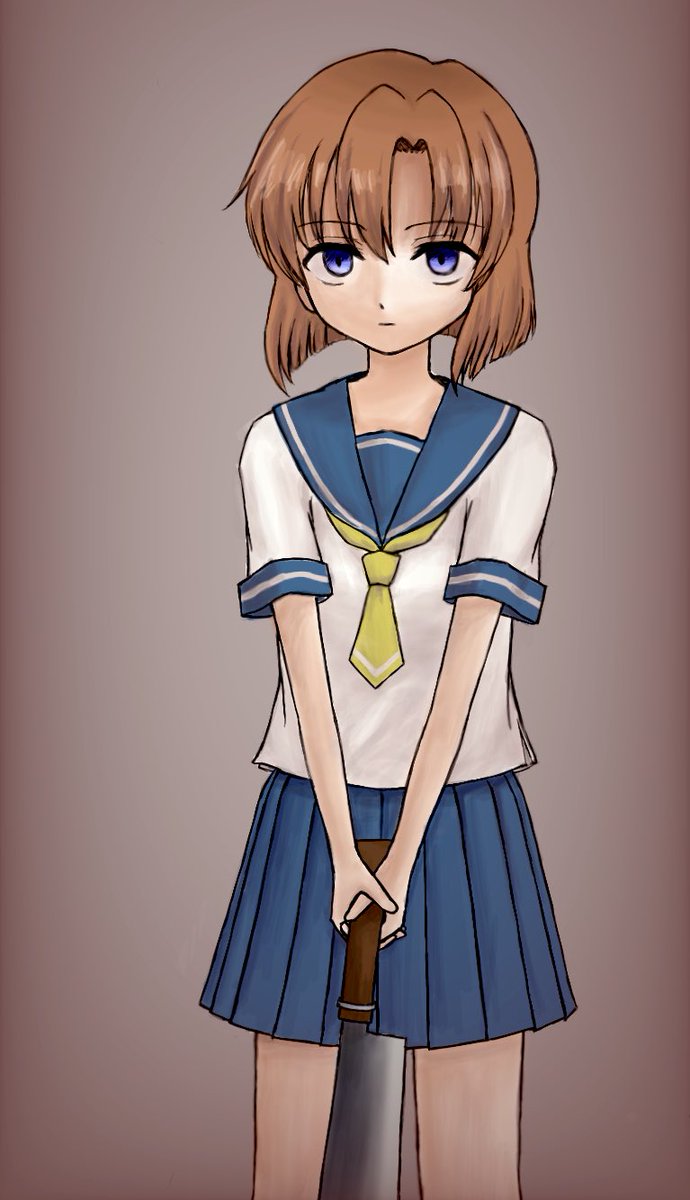 実はひぐらし3人目なのだー 次は梨花ちゃん描こうかな レナだけガチモードです。 #ひぐらしFA