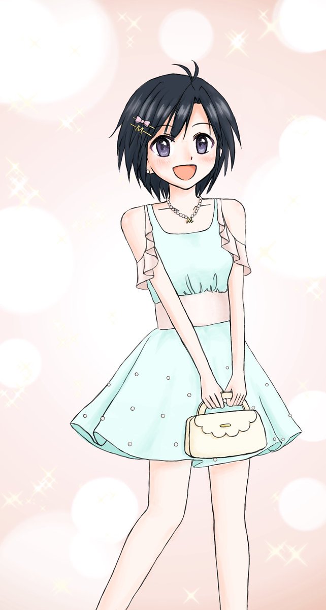 もう秋なんですけど、いつもは着ないよそ行き服で夏のドキドキお出かけ、、っていう 想像で描いた菊地真ちゃんです👗💞 #菊地真 #アイマス #イラスト