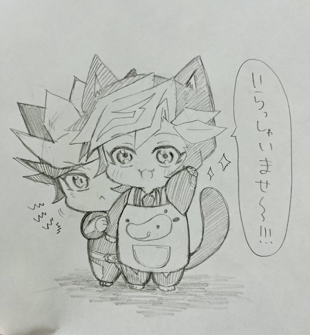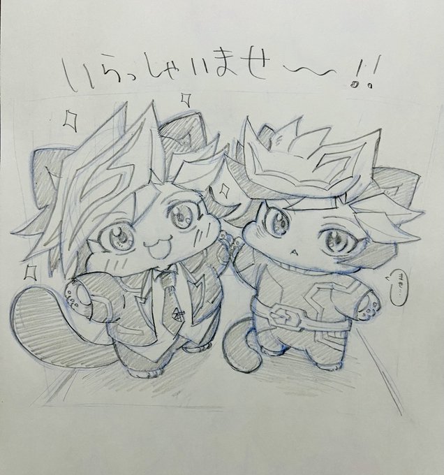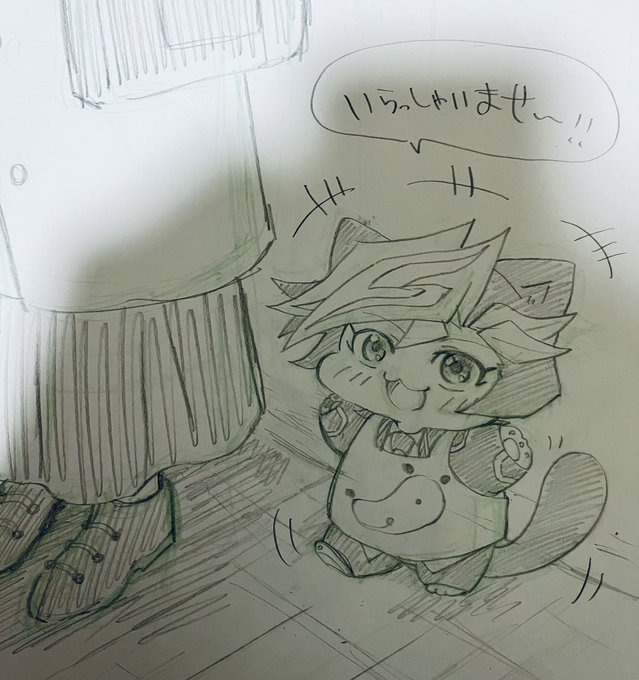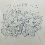 一緒に「いらっしゃいませ〜!」を言う猫作君達🐱🐱✨