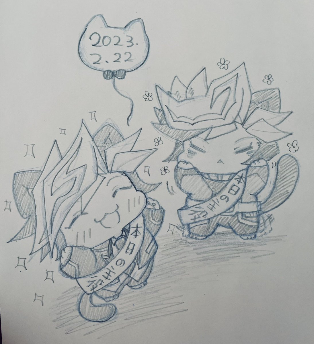 27 55 猫の日なので「本日の主役」のタスキをかけてる猫作君達🐱✨ 猫作「主役だとね〜いっぱい撫でて貰えるんだよ〜!🐱✨」 23/02/22 13:14