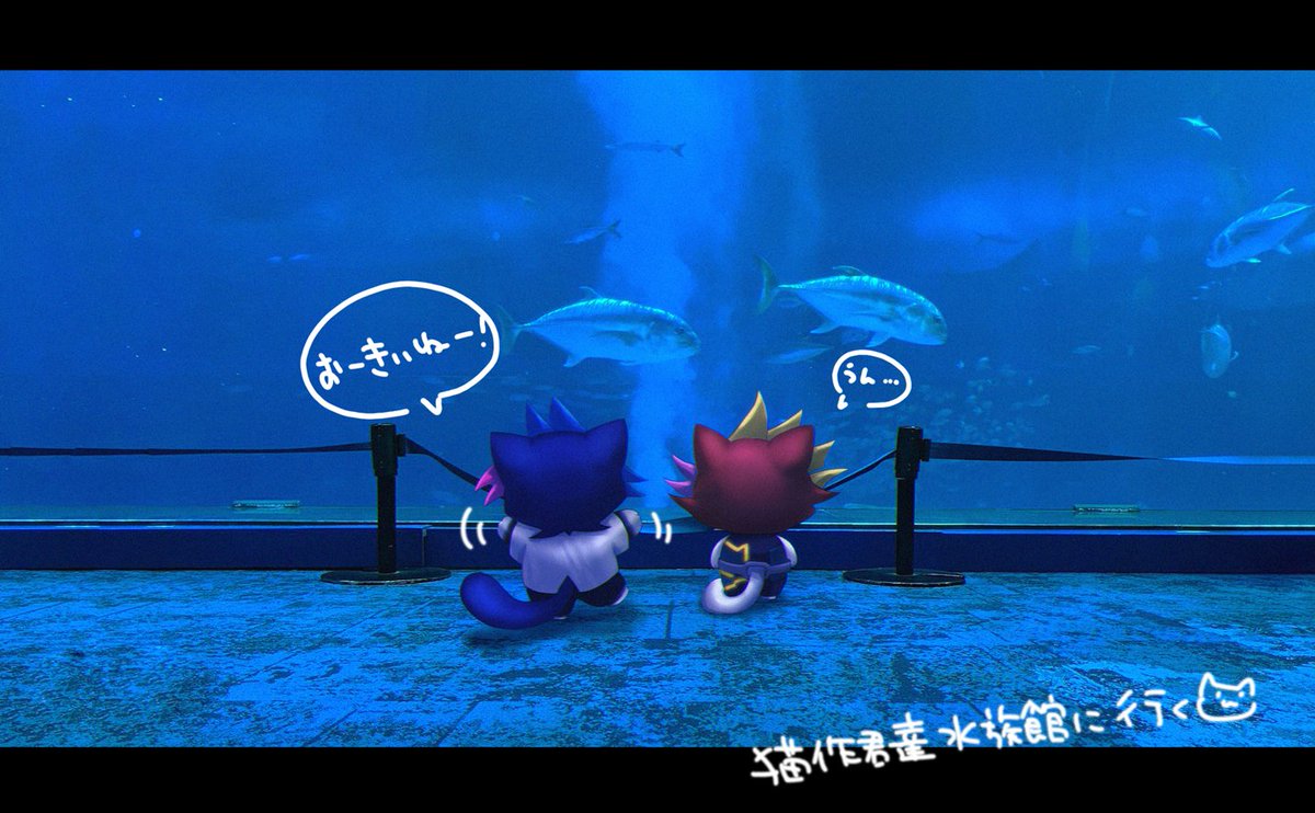 猫作君たち水族館に行く🐡🐟🐠 猫作「大きいねー!」 プレ猫「うん…(驚いてる)」