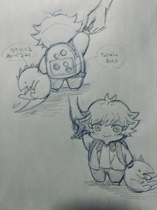 32 112 恐竜展行った時に居た、恐竜のぬいぐるみ引き摺ってた子が可愛かったので、小さい了見君にした😄 23/06/03 18:36