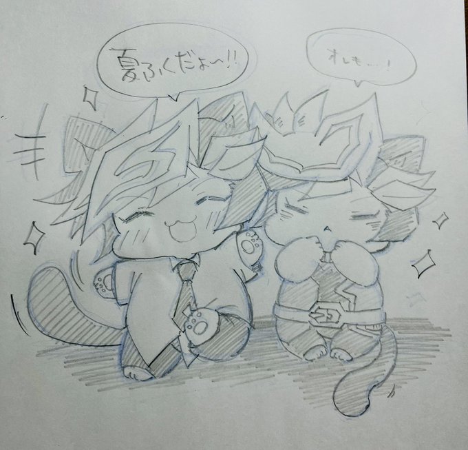 21 61 夏服に着替えた猫作君とプレ猫ちゃん🐈🐈⬛🐈🐈⬛ 猫作「夏服だよ〜!」 プレ猫「オレも….!」 23/06/13 23:47