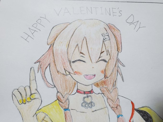 HAPPY VALENTINE'S DAY!! アナログ練習イラストころねちゃんをどうぞ( ゚∀゚)つ #できたてころね