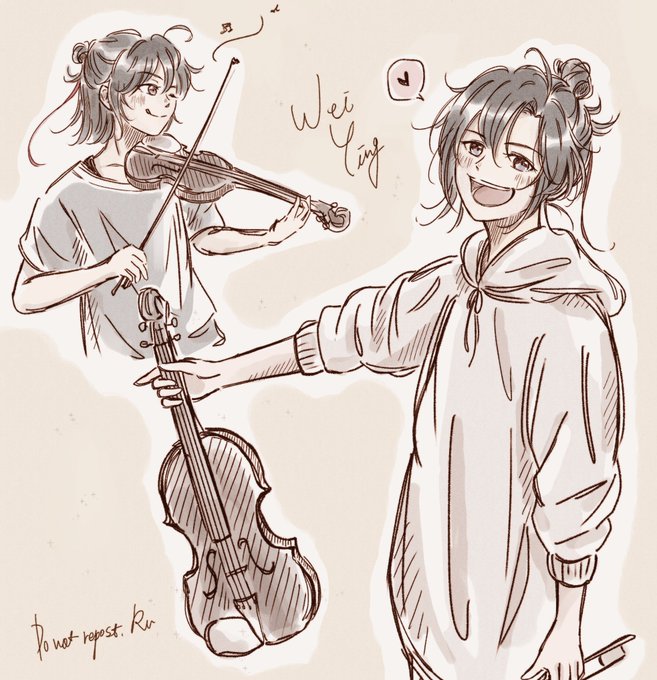 好き勝手描いてみた学生バイオリニスト魏嬰くん🎻(現代AU)#mdzs ちっさいジャズバーとかでバイトしてて欲しい、、