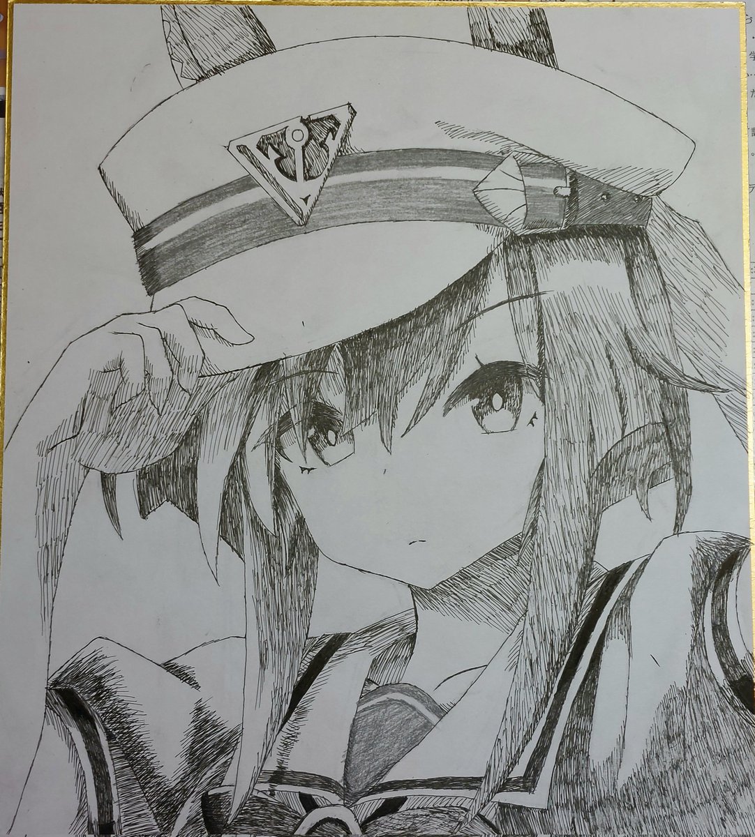模写シュヴァルグラン完成! 途中ペンのインクが出なくて時間がかかってしまった... #模写 #イラスト #ウマ娘 #シュヴァルグラン