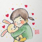 1 10 相思相愛! #かわいい #ぬいぐるみとの #友情 #癒し #うさぎ #アナログイラスト #筆ペンイラスト #顔彩 21/02/19 13:03